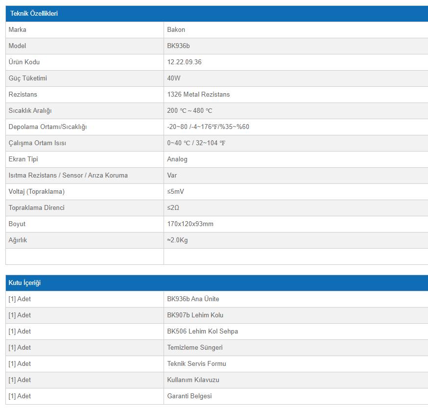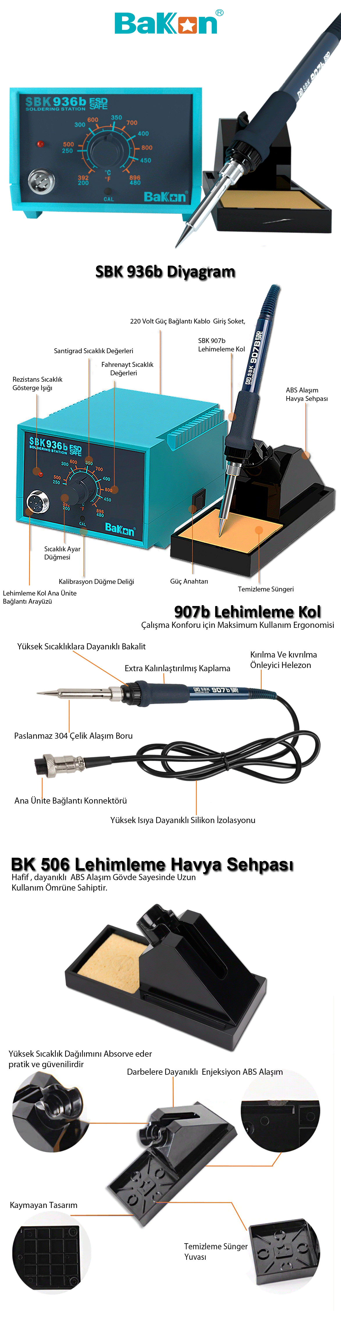Sektör profesyonellerinin lehimleme işlemlerindeki hız ve maksimum performans ihtiyacına Bakon SBK936b Isı Kontrollü Havya İstasyonu cevap veriyor. Kompakt bir tasarıma sahip ısı ayarlı havya; ergonomik dizaynı ile de kullanım kolaylığı sağlar. Sahip olduğu benzersiz ''arıza tespit uyarı sistemi'' sayesinde de size güvenli çalışma koşulları yaratır.