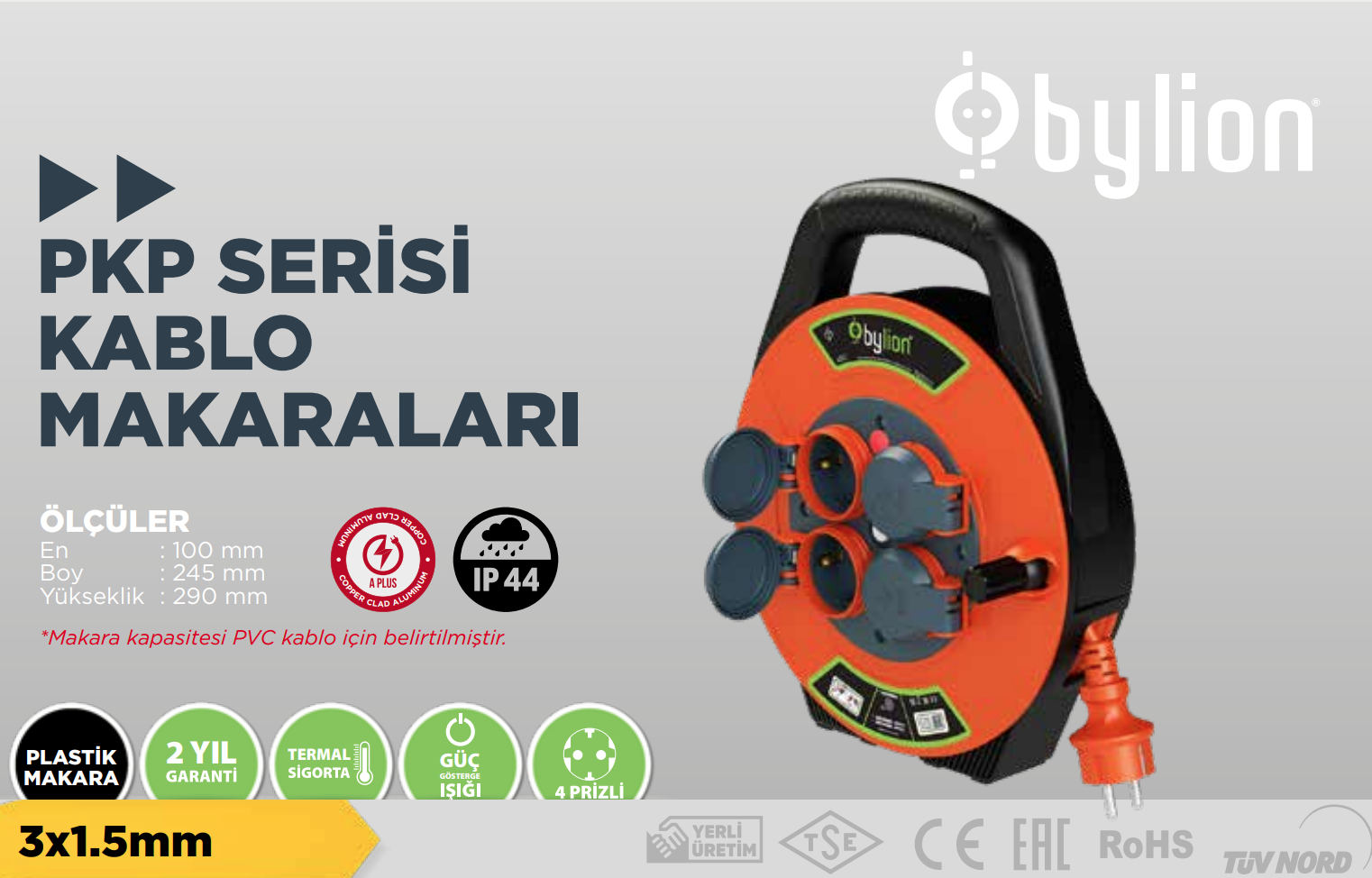 BYLION Plastik Makara 10m 3x1,5mm TTR KABLO KAPAKLI PKP-10315-F