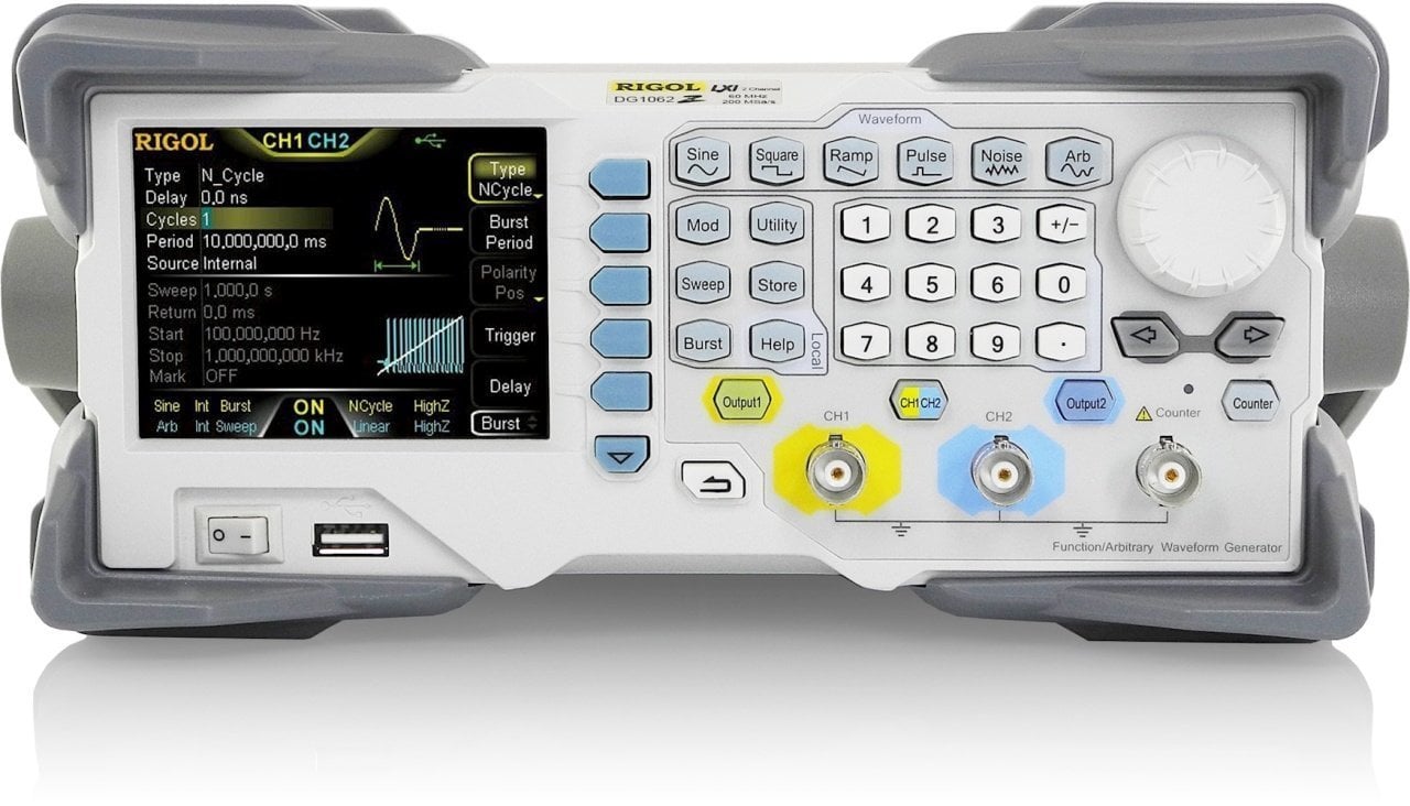 Rigol DG1022Z, 2 kanallı bir fonksiyon/keyfi dalga jeneratörüdür. Oluşturulmak istenen dalganın kalitesinden ödün vermeden 25 MHz (sinüs) dalga genişliğine kadar çıkabilir. İki analog çıkış biriminin yanı sıra, cihaz 200 MHz frekans sayıcısına, USB-host ve USB-device olmak üzere iki farklı USB arabirimine sahiptir.