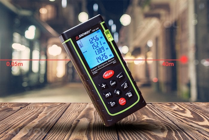 Sndway SW-A40 lazerli mesafe ölçer lazermetre cihazı; maksimum 40 metre mesadeya kadar temassız şekilde uzaktan mesafe ölçümü yapabilen lazer metre çeşididir.